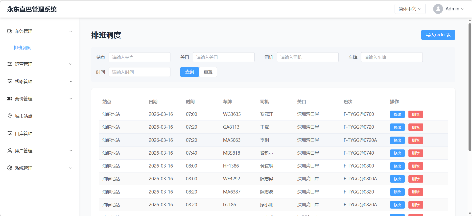 - 数字化调度支持:替代纸质Order表,实现班次与司机/车辆的实时绑定